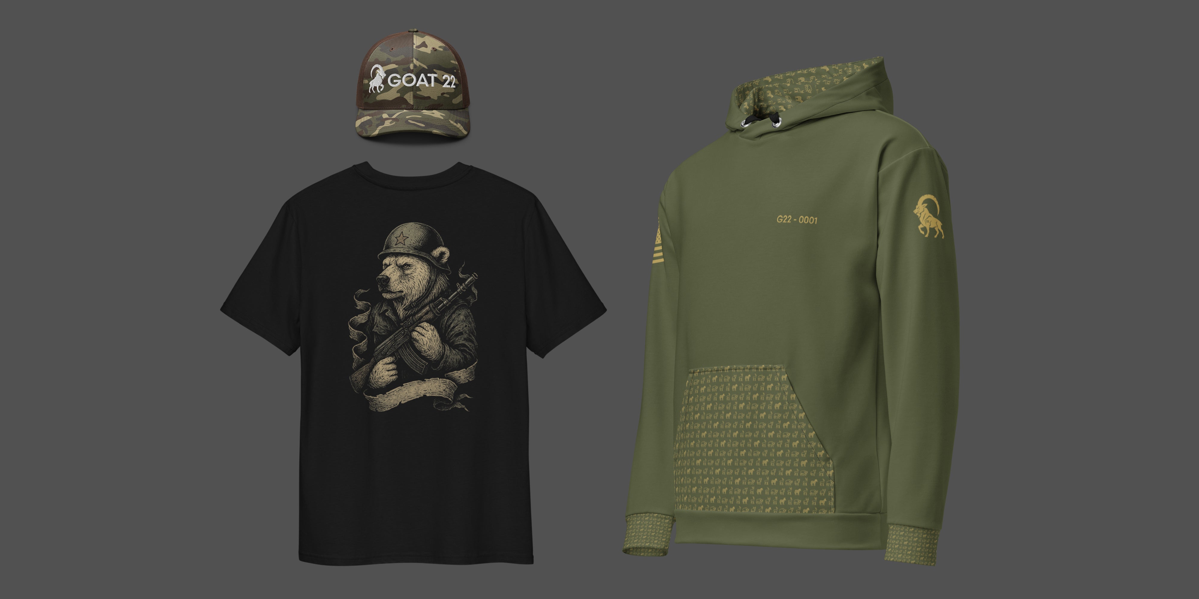 GOAT 22 isn’t just gear—it’s a statement. Every drop funds life-changing hunts, supports our vets, and looks damn good doing it. We’re here for the bold, the hunt, and the ones who don’t flinch when it’s time to show up. Welcome to the fight. Suit up.
